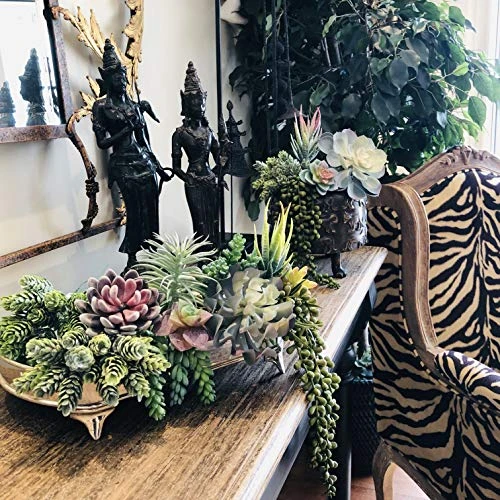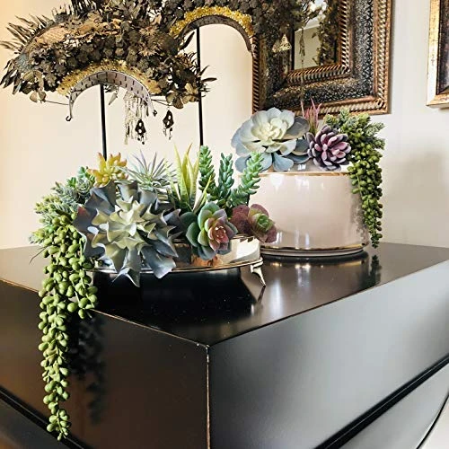 - ELEGANT – Handmade Craftmanship – These artificial succulents come in a variety of different sizes, colors, and textures that feature hand-painted art over lifelike plastic to give them a vibrant, realistic form.