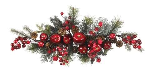 Nearly Natural 4914 Mini Poinsettia & Berry Triple Candelabrum, Red