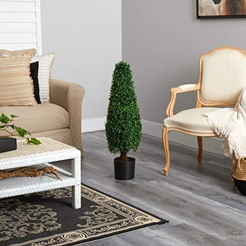 - The boxwood is a classic “decorating hedge”, and why not? It’s pretty, dense leaves make for perfect canvas for a talented horticulturist sporting a trimmer. Here’s a boxwood that’s trimmed into what’s called a “tower topiary” shape, and ready to enhance your home or office décor. Best of all, this is an indoor/outdoor decoration, and fully UV resistant.