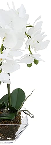 Nearly Natural 4570 Triple Phalaenopsis Orchid In Glass Vase,Green/White