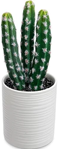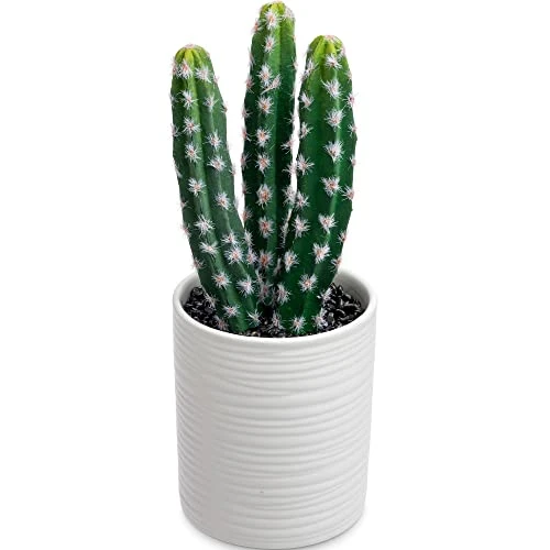 - THE PERFECT SIZE – This artificial cactus is potted in a white ribbed ceramic pot with black rocks. Its realistic size of 10.5 x 4.5 inches makes it great for centerpieces, office decor, living room decor, and more!